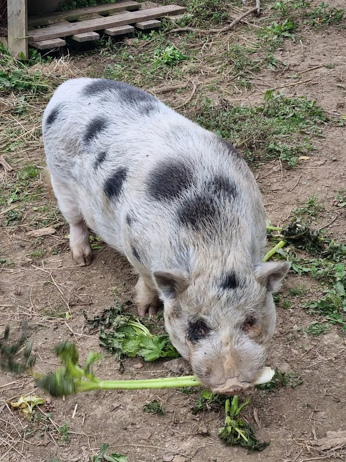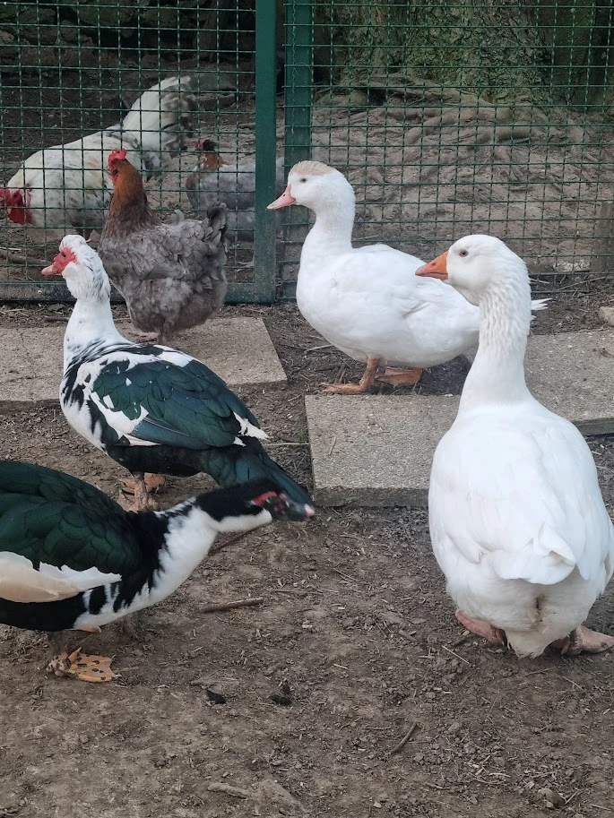 Notre grande famille compte aujourd’hui des lapins, poules, oies, canards, dindons, tortues, chiens… et nos mascottes que beaucoup connaissent déjà, Eliot l'âne-roi des bêtises, Lardon le cochon au grand cœur, Enzo l’alpaga plein de douceur, et Chaussette, notre dernière arrivée et amie inséparable de Lardon.